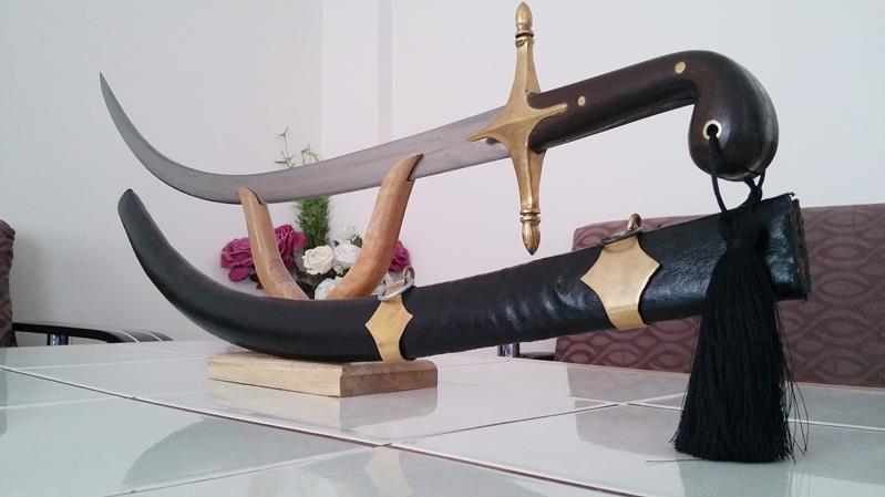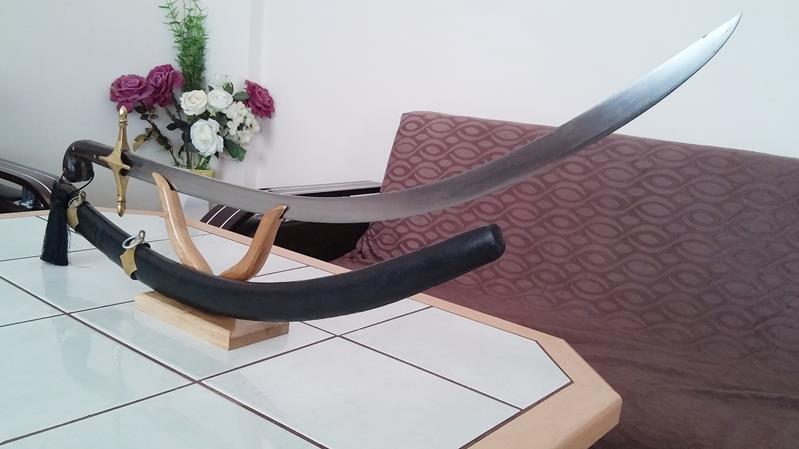 Bu kavisli kılıcın kökeni 9.yüzyıla ve Orta Asya’ya dayanır. Farsça kılıç anlamına gelen Şemşir, diğer kılıçlardan farklı olarak bele yatay olarak takılır. Tip olarak eğri, uca doğru incelen ve sivrilen bir formdadır. Yandan görünüşü aslan kuyruğunun kıvrıklığını anımsatır. Bu kılıç, darbe enerjisini bıçağa yayarak, kesme üzerine odaklanır. Bu sebeple saldırıdan ziyade savunma silahı olarak kullanılmıştır.